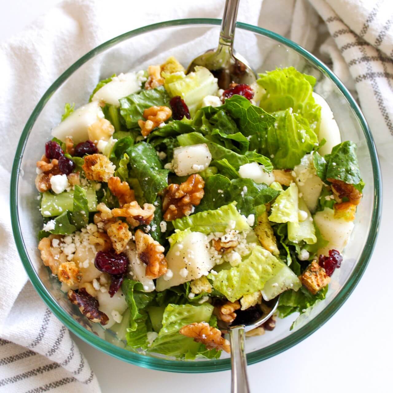 Check out my salad recipes here on the blog for chicken salad (perfect on toast in a sandwich or over a bed of greens, cobb salad (great if you have cold cuts or proteins prepared), pear goat cheese salad, or strawberry avocado salad. Don't forget my homemade vinaigrette to go on top with fresh garlic and Italian herbs!